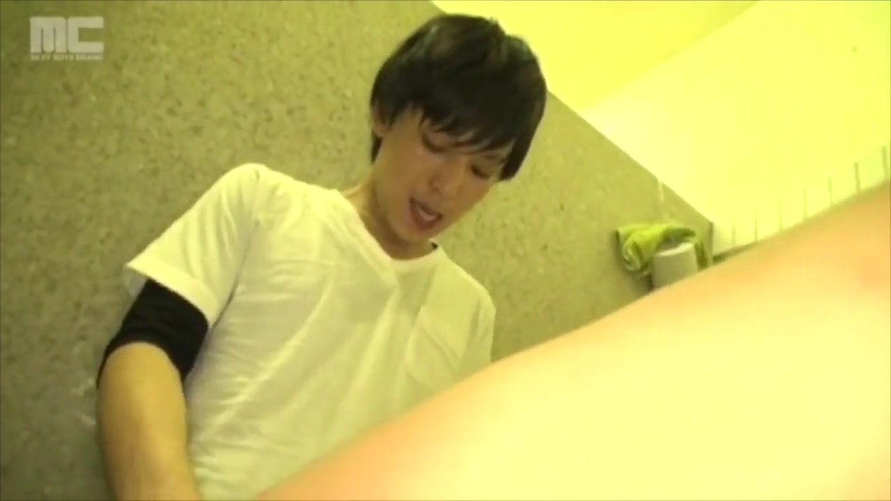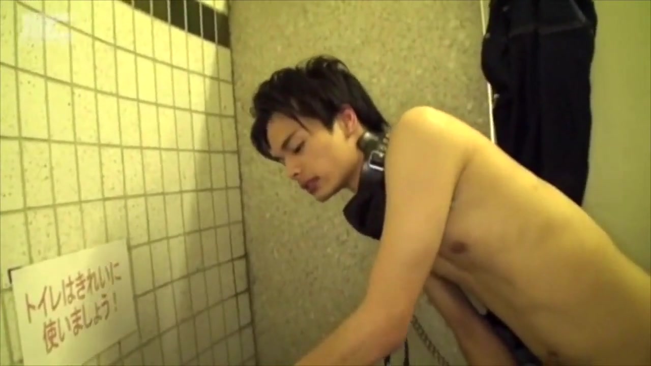 【ゲイ動画】公衆便所の個室の便器に座る目隠しされたイケメンを見つけたジャニーズ系美少年、立ちバックでがっつりアナルを巨根で味わう!
